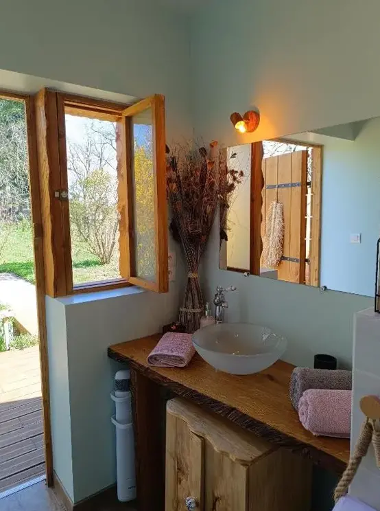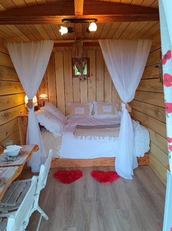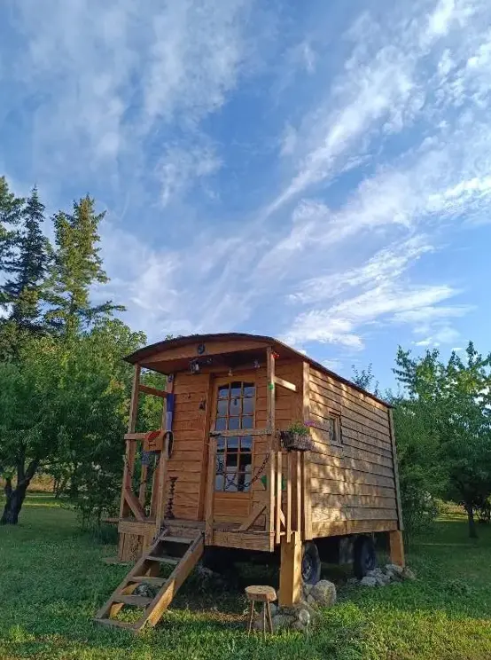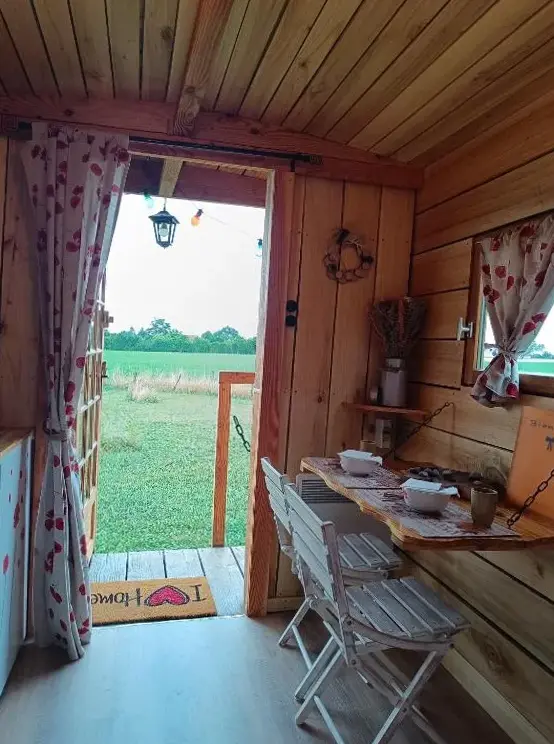 Vi nød stedet, det var godt at tilbringe natten i en trailer var det mest personlige sanitære faciliteter ikke langt fra det den varme velkomst morgenmad i køleskabet for at forlade på det tidspunkt, hvor vi ville have rengøring af lokalerne, dekorationen og ejere venlighed takker dig igen for dette smukke skridt